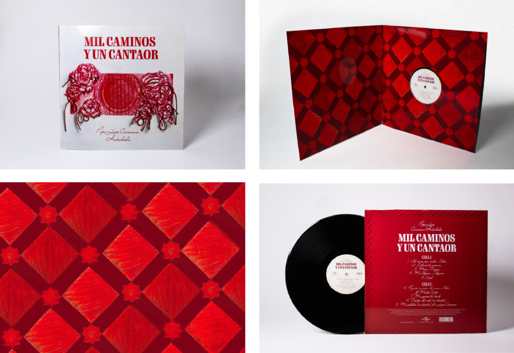 Rediseño de un vinilo ya existente a cuenta del Festival de Música Flamenca MILNOFF 1922 en 2025 del artista Pepe Luis Carmona Habichuela. La ilustración principal está dibujada a lápiz de color, cosida a mano sobre el papel y fotografiada posteriormente. Para las ilustraciones interiores se crea un patrón de inspiración granaína con textura al utilizar el lápiz de color. Vinilo expuesto al público y comprado por el cantante y organizador del festival.