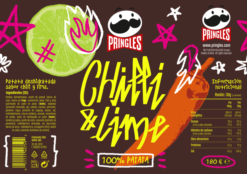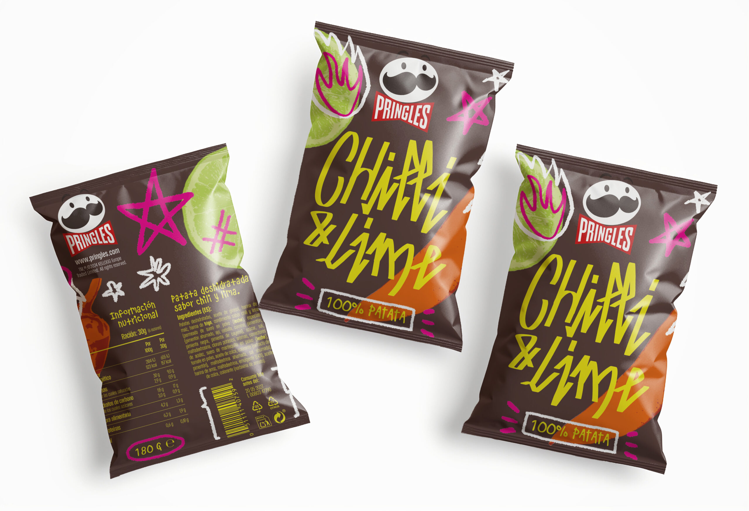 Rediseño de una bolsa de patatas fritas de la marca Pringles, dándole un estilo urbano. Inventando un nuevo sabor, juego con ilustraciones coloridas que dan personalidad al envase.